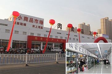 肉食水產(chǎn)交易大廳于2013年12月18日建成,由東西兩個大廳構(gòu)成,共156個攤位。東廳以經(jīng)營牛肉、羊肉、凍品為主,分為:鮮肉區(qū)、熟食區(qū)、凍品區(qū)、活魚區(qū);西廳以經(jīng)營蔬菜、副食、調(diào)料為主,肉菜搭配已經(jīng)形成了生鮮批零大廳。多年來,肉食大廳嚴(yán)格實(shí)施市場準(zhǔn)入制度,建立系統(tǒng)的安全可追溯體系,規(guī)定只有符合具有全國知名豬肉生產(chǎn)加工品牌、公眾普遍認(rèn)可的生產(chǎn)廠家,且經(jīng)營證照齊全、經(jīng)營規(guī)范的大的經(jīng)銷商才可以入市經(jīng)營,否則一律不準(zhǔn)入場經(jīng)營,同時率先引入健康安全的“千喜鶴”冷鮮肉,凈化了肉食品消費(fèi)環(huán)境,真正實(shí)現(xiàn)了優(yōu)質(zhì)優(yōu)價,使美通市場成為經(jīng)營中高端肉市場,成為老百姓信得過的放心肉市場,經(jīng)營效益穩(wěn)步提升,對引導(dǎo)百姓健康消費(fèi)、引領(lǐng)呼市肉食品市場健康發(fā)展起到了帶頭作用。